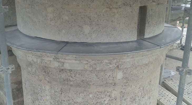 Nous avons également apporté une protection zinc à tasseau aux abats sons de l’église et réalisé une boite à eau en zinc. Enfin, divers travaux de zinguerie ont été réalisés sur cette église classée aux monuments historiques.